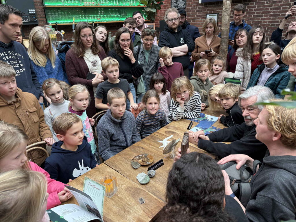Daarnaast organiseerden we een speciale vertoning in het Louis Hartlooper Complex in Utrecht. Na afloop vond een nagesprek plaats met Gijs Rademakers, Maarten van Rossem en paleontoloog Yasmin Grooters. Voor de jonge bezoekers was er een extra programma waarin zij echte fossielen konden aanraken en boeken konden laten signeren.